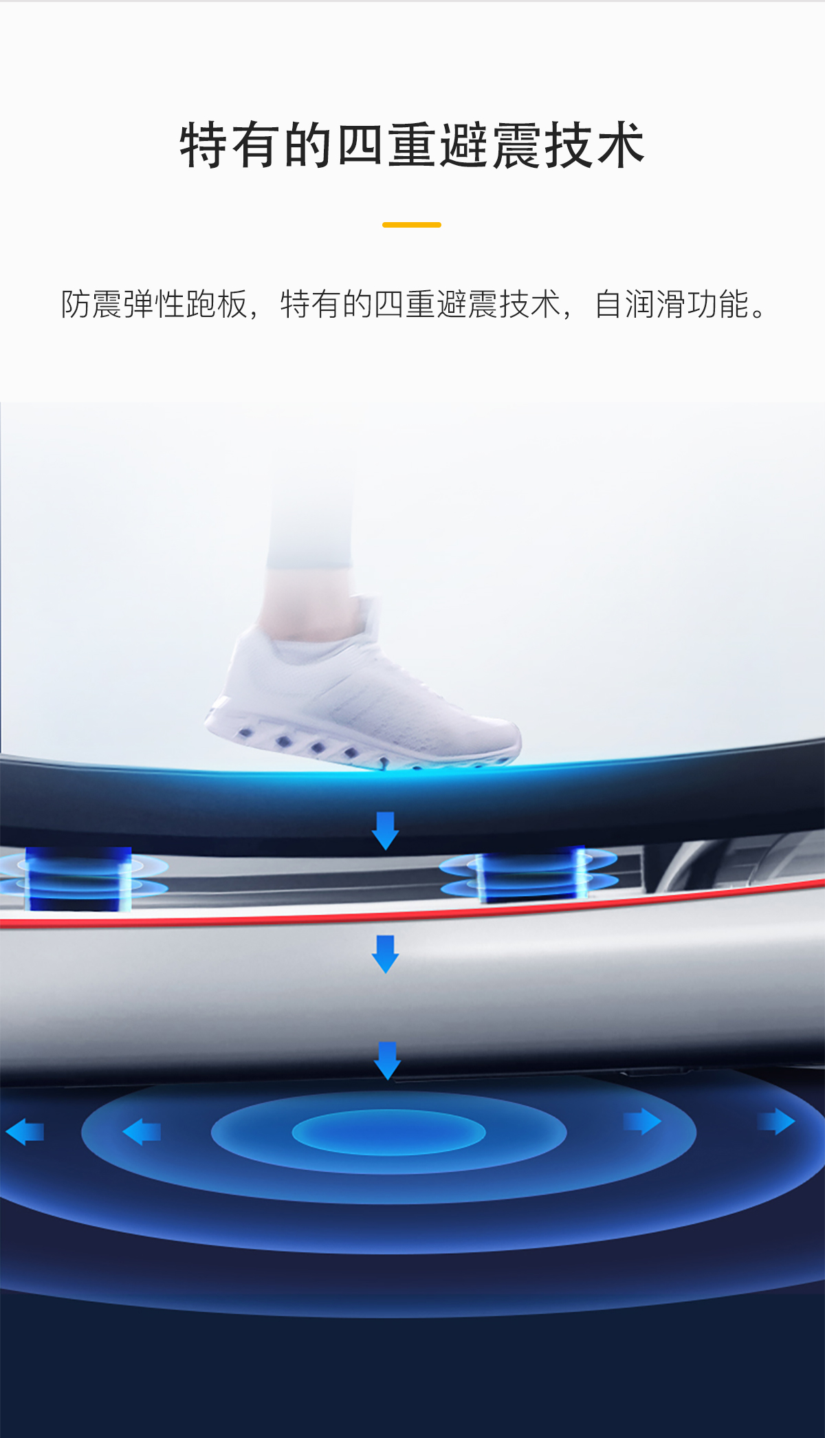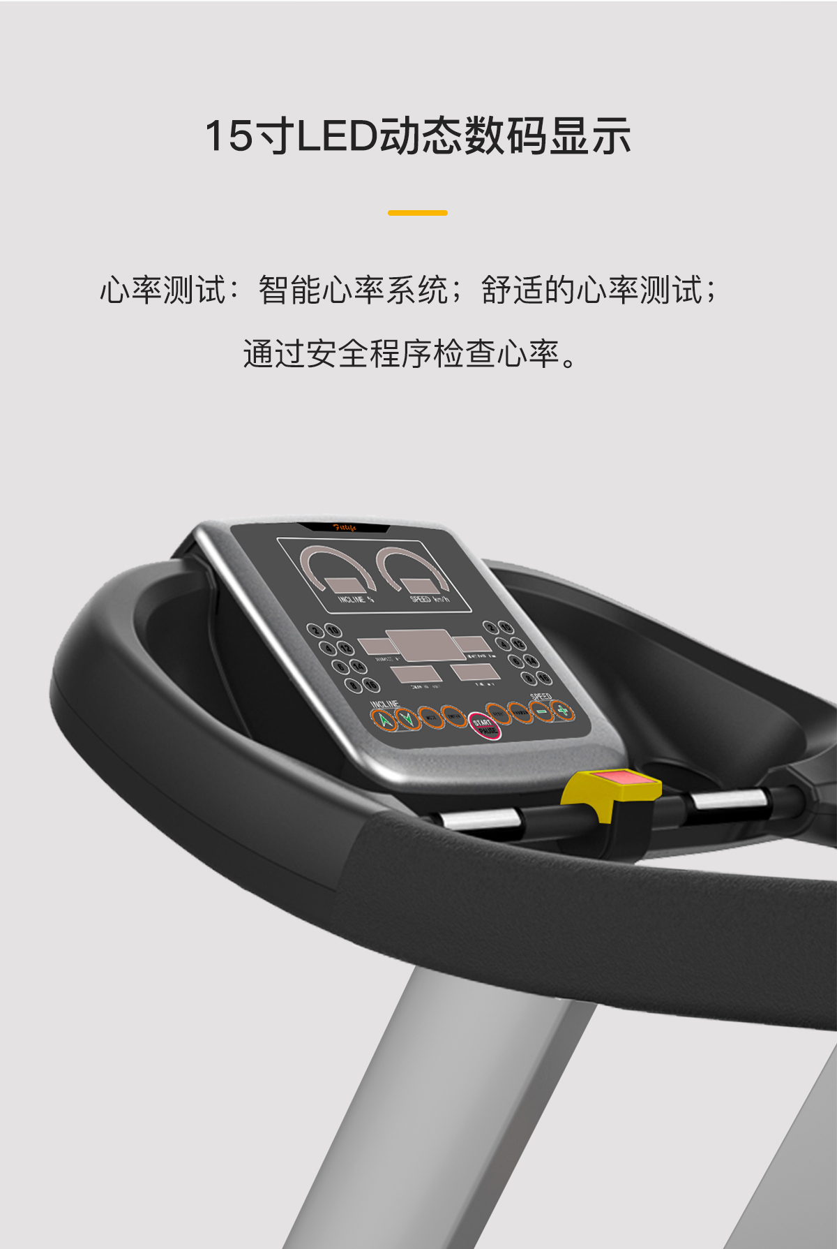 15寸LED显示面板,智能心率系统,人体工艺学扶手,特有的四重避震技术,自润滑功能